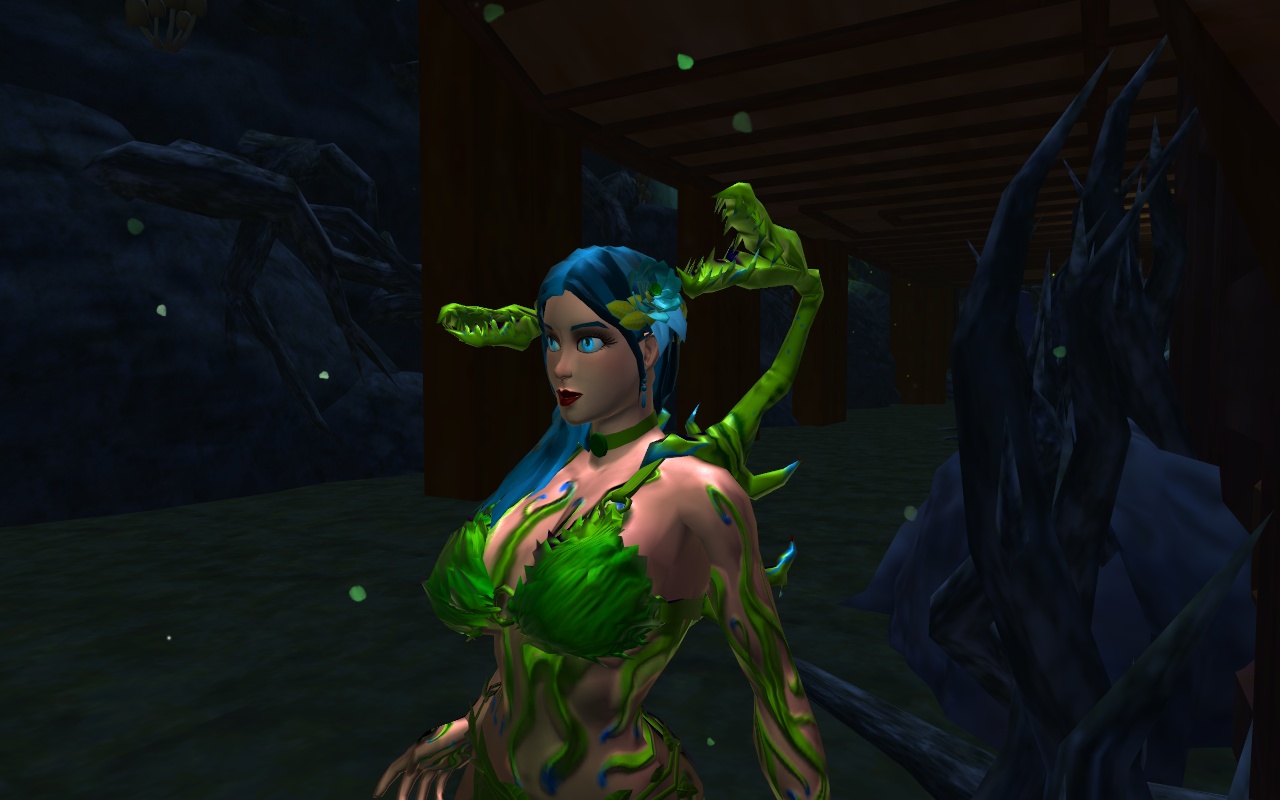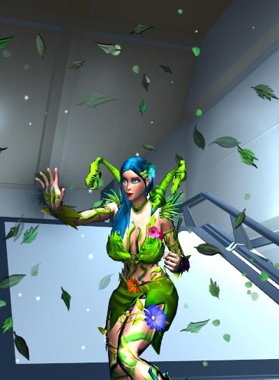 PRETTY FLOWERS: The flowers in her hair and over her body are created by Peek. The flowers can be any style, color, and smell she desires.