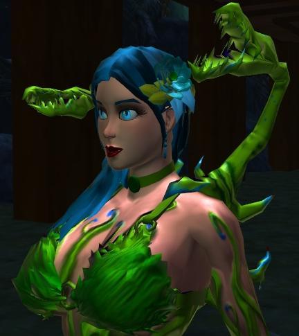 HAIR: Blue-Green, Naturally. Long and wavy, usually with a decorative flower.